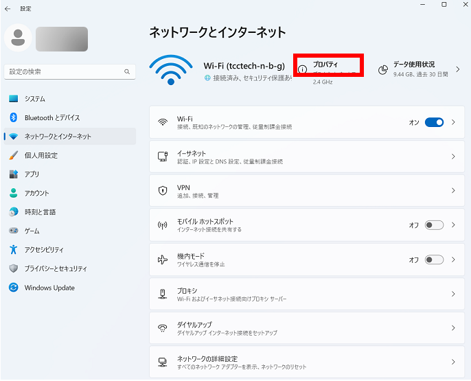 1. [プロパティ]をクリックします。